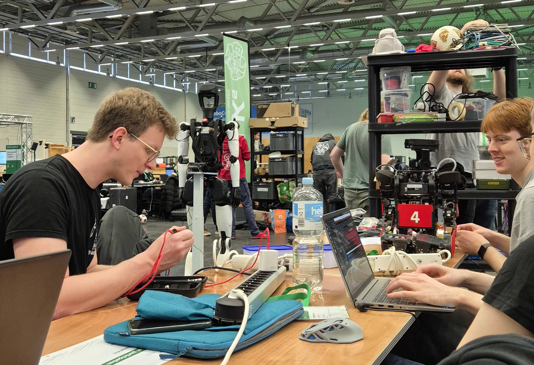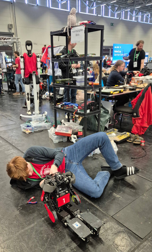 Wie bei vielen Turnieren war auch bei uns die Hardware zum Ende hin nicht mehr im perfekten Zustand – mehrere Spiele hinterlassen ihre Spuren. Entsprechend wurde in der Vorbereitung auf das Finale noch einmal intensiv an unseren Robotern gearbeitet, um alles Bestmögliche herauszuholen.