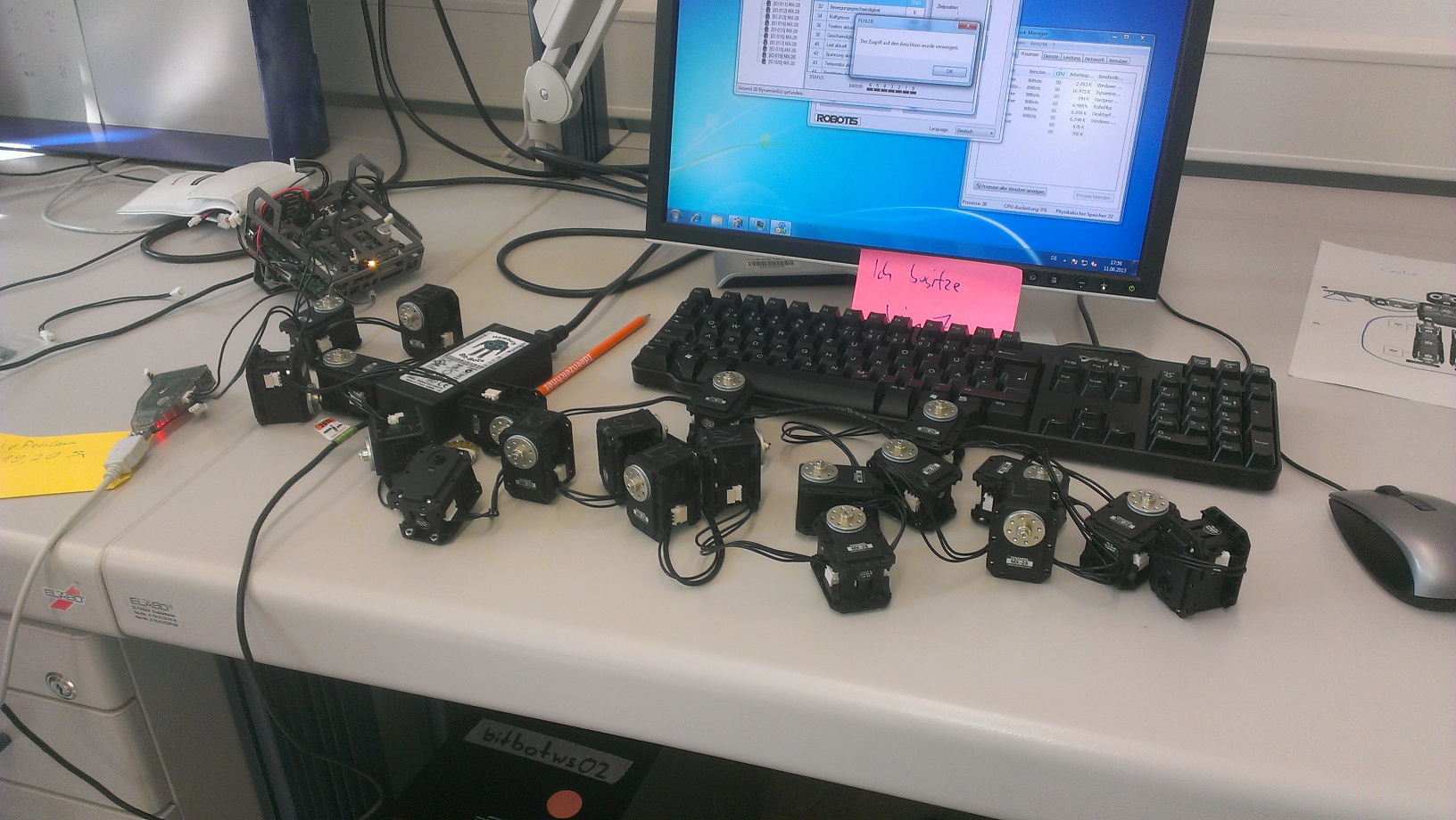 Wie bereits geschrieben, hatten wir in Berlin einige Probleme mit den Motoren. Zur Problembehebung haben wir nun bereits unsere Roboter komplett auseinandergenommen und nur die Motoren verbunden für einen genauen Test. Positiv lässt sich auf jeden Fall schonmal sehen, dass wir zur WM dann mit komplett getesteten Motoren fahren werden.