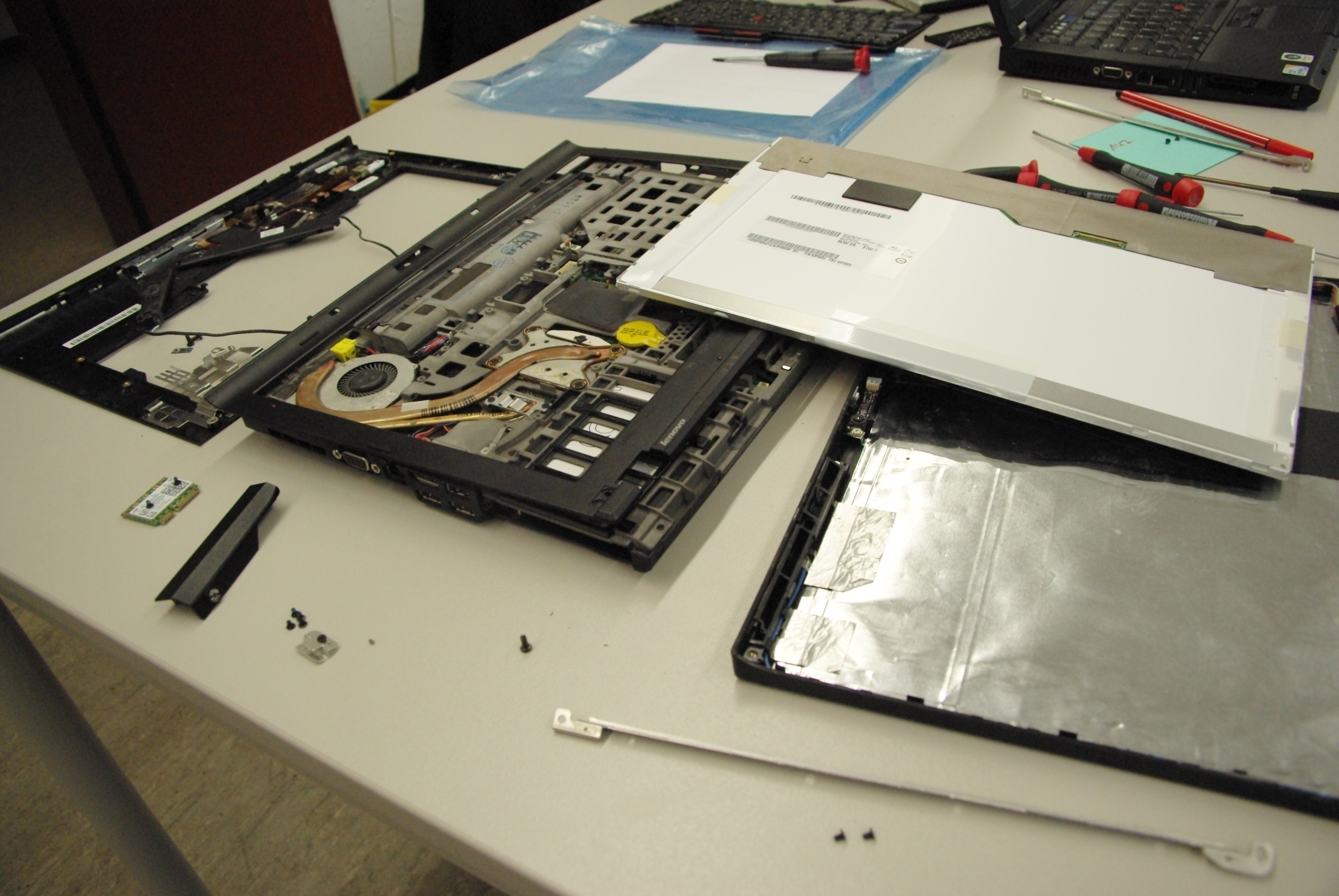 Wärend des Magdeburg-Vorbereitungstreffens in Berlin gab es einen tragischen Unfall mit Wheatly und einem Laptop. Wärend hochkonzentriert mit Wheatly gearbeitet wurde verhakte er sich an der oberen Ecke des Laptopdisplays und stürzte. Wheatly ging daraus unversehrt heraus, das Display hingegen hatte einen Riss, so das die unteren 50-60% unbenutzbar waren. Aber wir wären nicht die BitBots, wenn wir nicht nur unsere Roboter wieder reparieren und wieder auf Vordermann bringen würden. So wurde knapp 2 Wochen und 100 Euro des Besitzers später die vollständige Genesung des betroffenen Computers zelebriert.