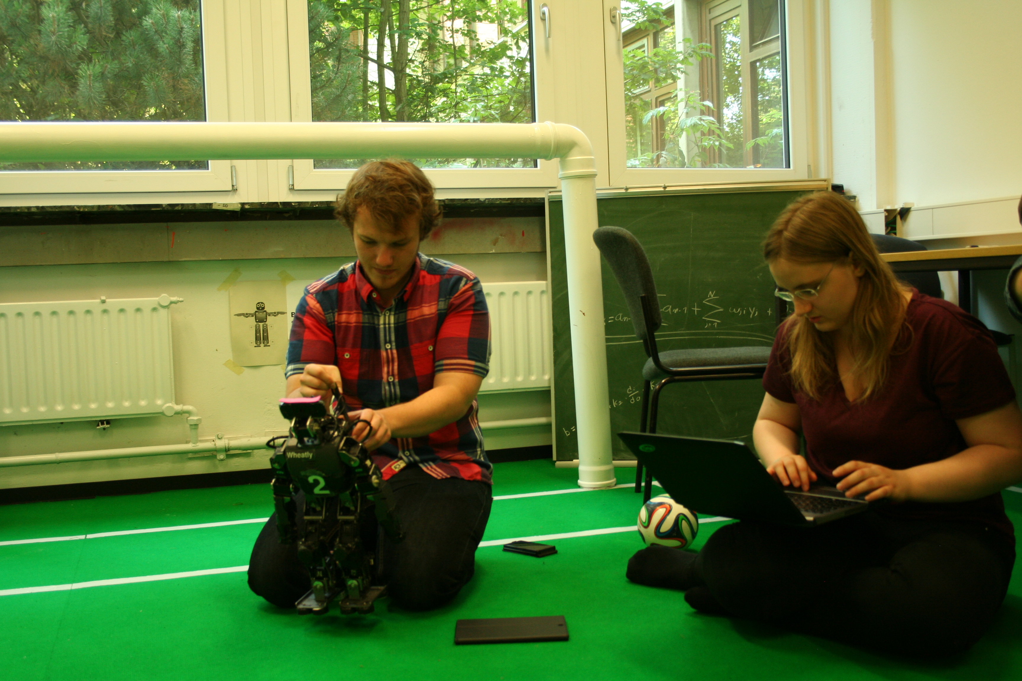 Am nächsten Tag began dann direkt das Unipraktium „Fußballspielende Roboter“, sodass die Ankunftsmeldung auf unserem Blog irgendwie untergegangen ist. Die Studierenden sind im Rahmen des Praktikums wieder sehr produktiv, wie man auch am angehängten Bild sehen kann.