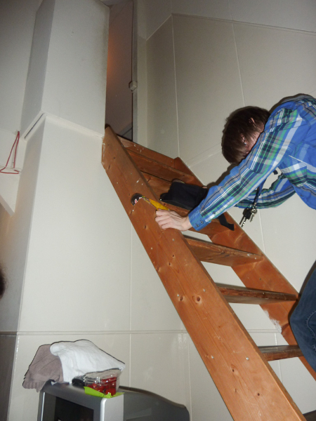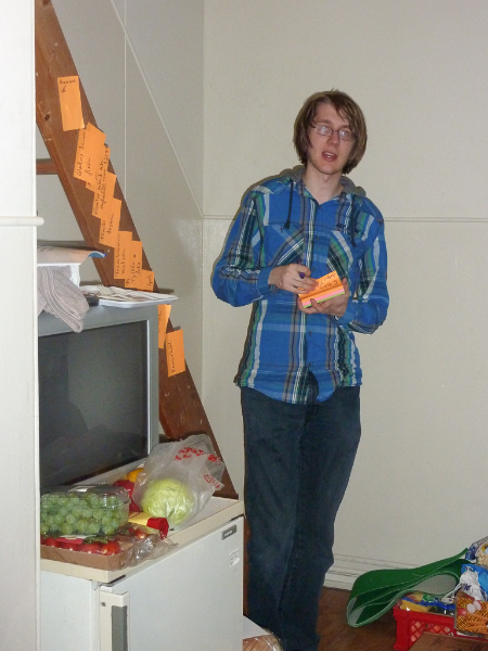 Gestärkt ging es dann in das erste Teammeeting. Die Aufgaben der nächsten Tage wurden besprochen und festgehalten. Auch die Treppe musste als Hilfe für die Planung herhalten.