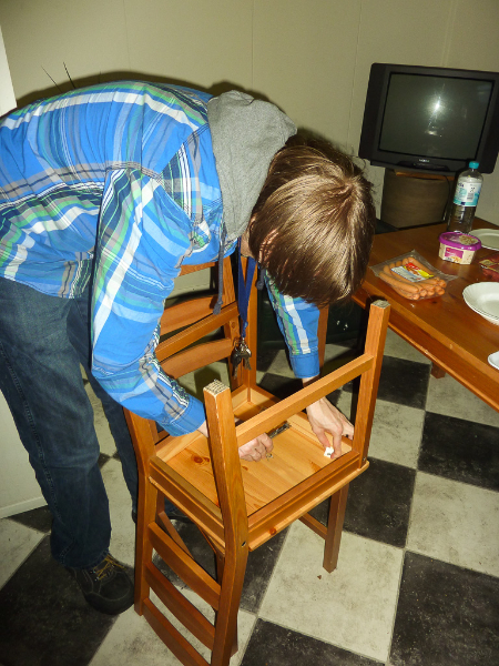 Beim Abendessen brach dann bereits der Arbeitseifer durch und ein beschädigter Stuhl im Essensraum wurde kurzerhand repariert: