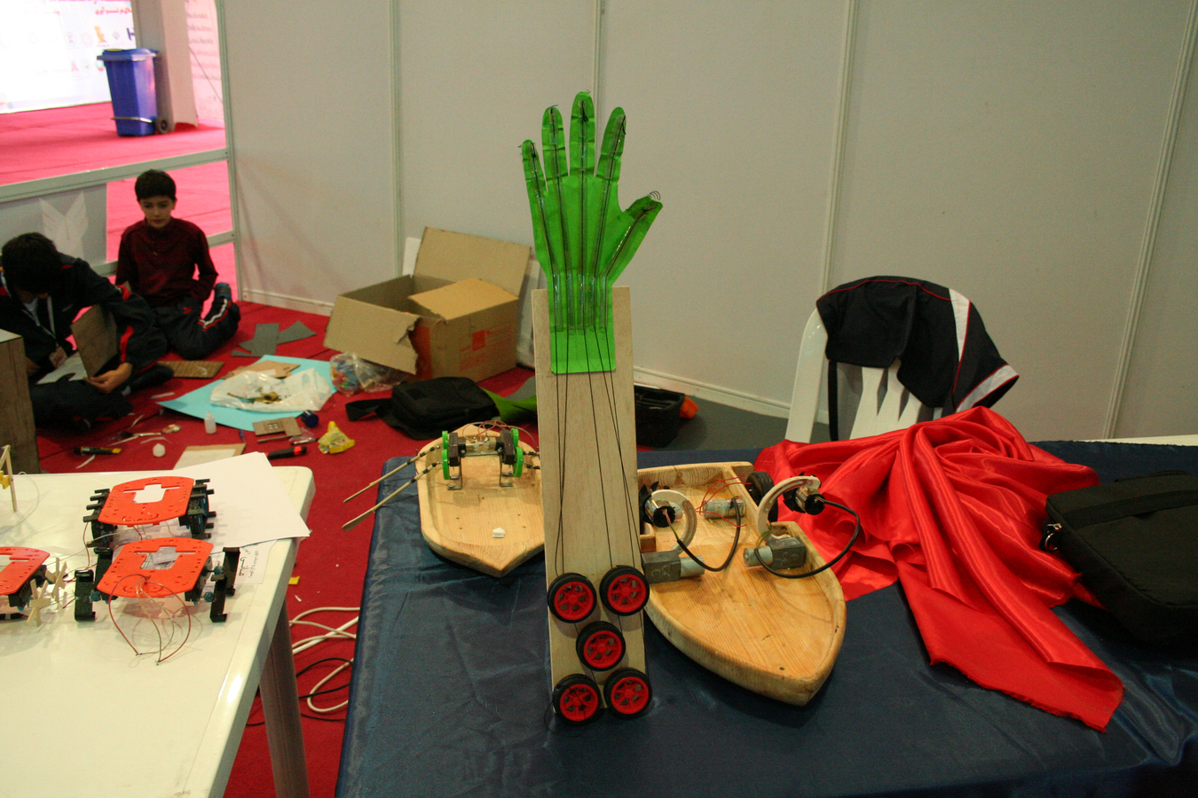 Die Planung für den morgigen Tag steht, jeder weiß, was er beim Aufbau zu tun hat und so arbeiten alle an der Wettbewerbsvorbereitung und fiebern der Öffnung der Halle entgegen.