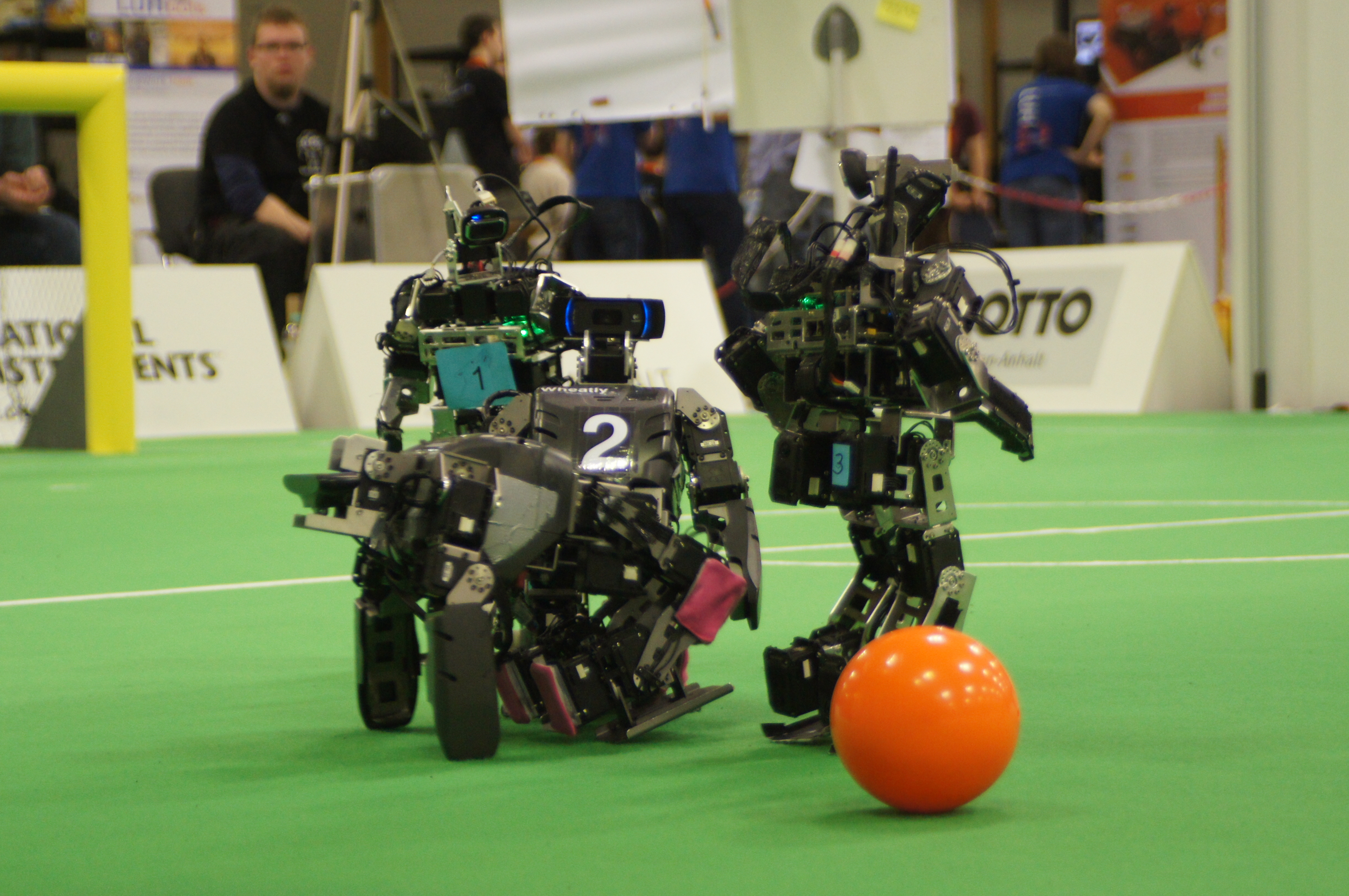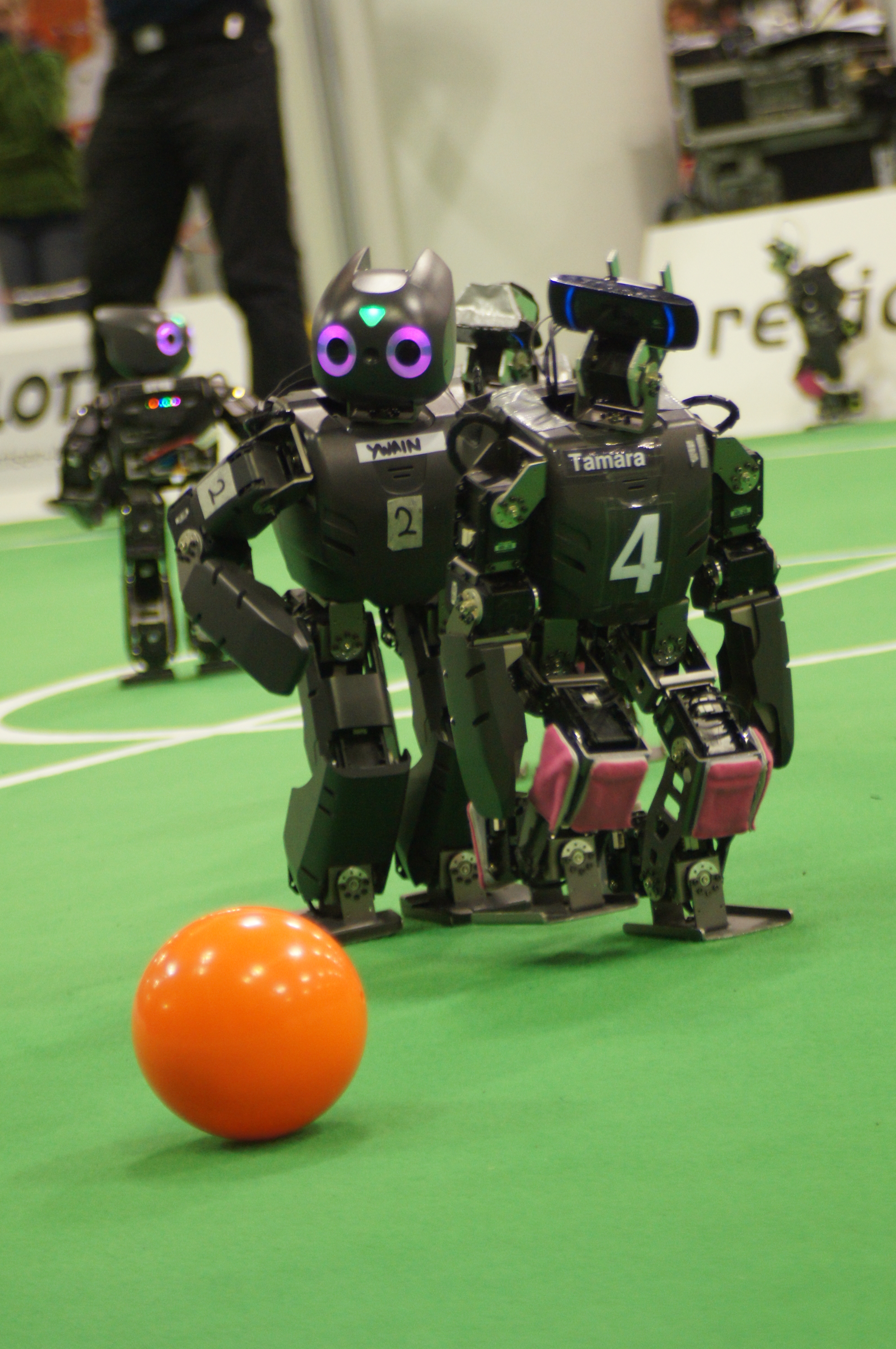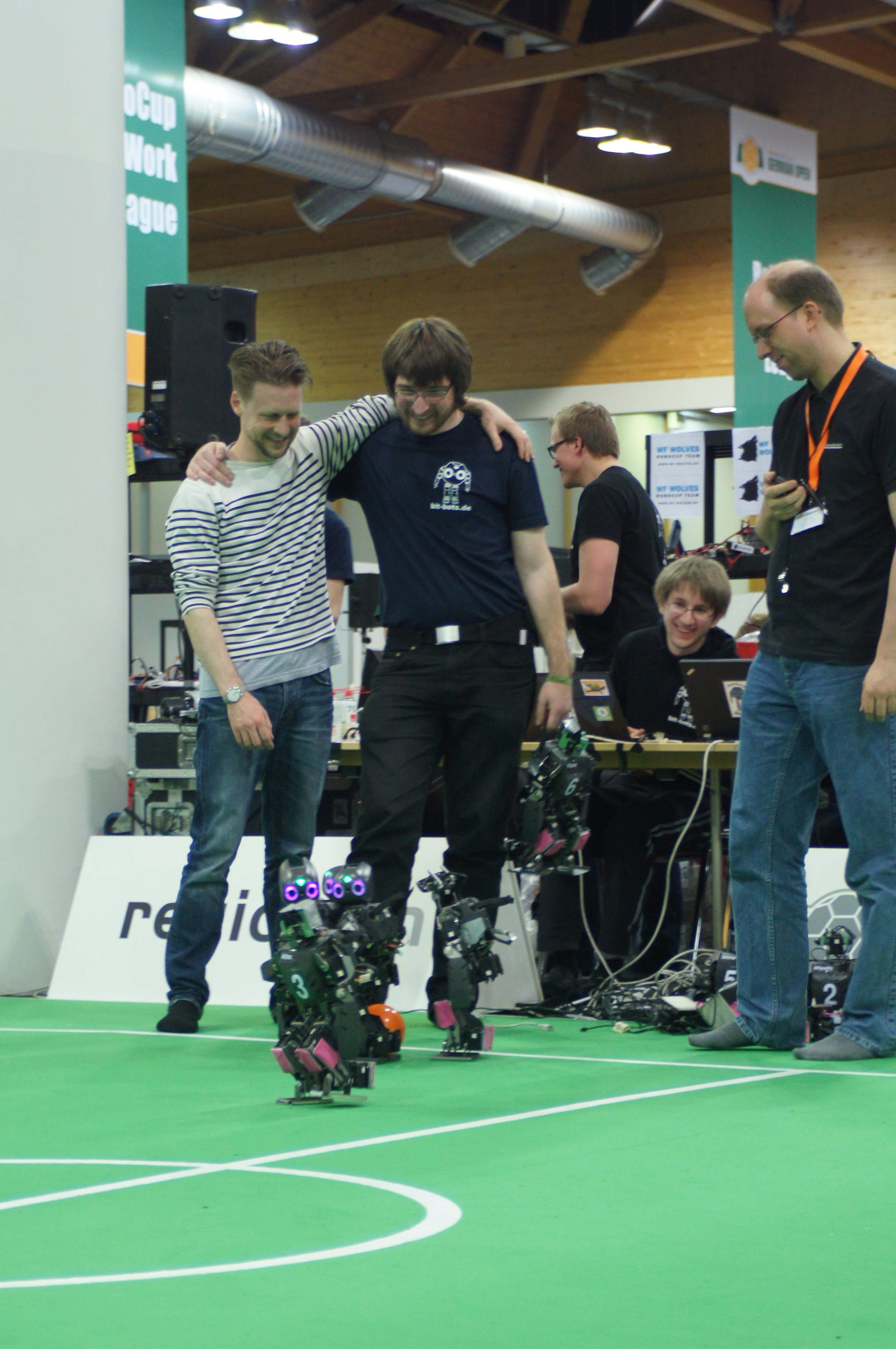 Damit werden wir im morgigen Spiel mit den Wolves leider nur um den 3ten Platz kämpfen können. Trotzdem sind wir mit dem Spiel sehr zufrieden. Sowohl wir, als auch die Bold Hearts haben große Fortschritte in der Bildverarbeitung, im Laufen und auch im Verhalten gezeigt und konnten dem Publikum ein spannendes Spiel bieten. Eine Niederlage für die Bold Hearts wäre mindestens genau so hart gewesen wie die unsere. Wir wünschen sowohl den Bold Hearts als auch den FUmanoids viel Erfolg für das morgige Finale und sind gespannt auf das Ergebnis. Dieses Spiel wird in unserem Livestream zu sehen sein.