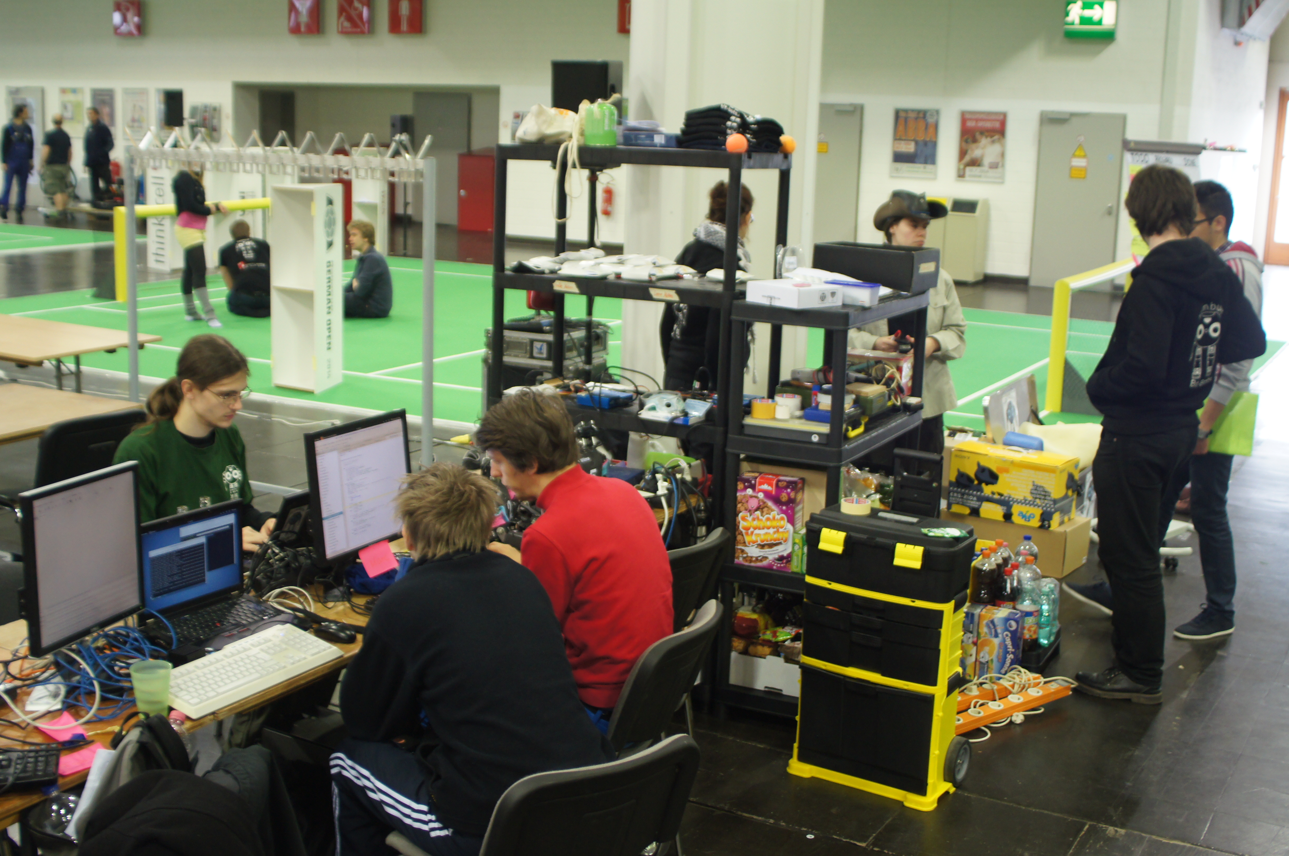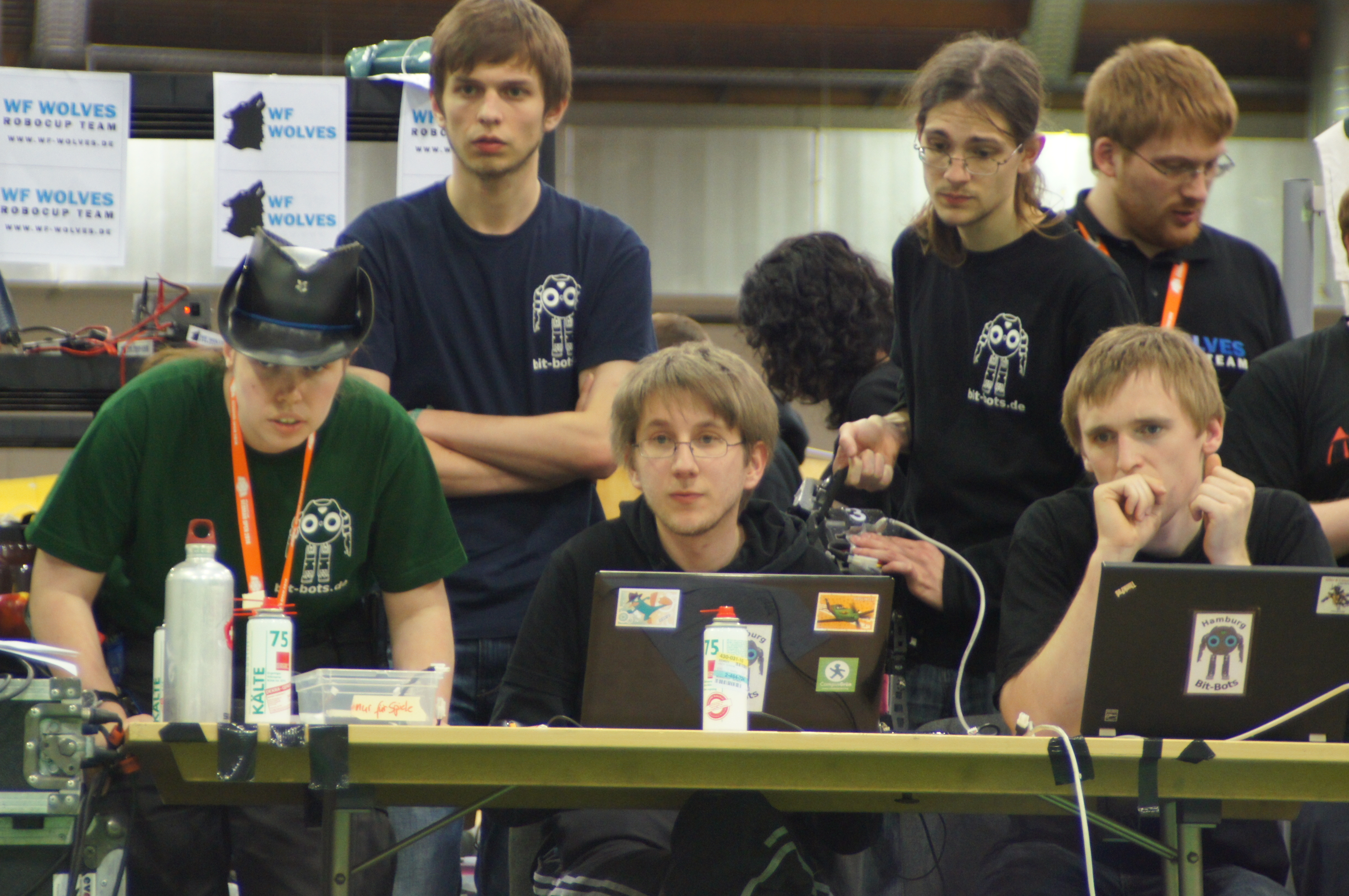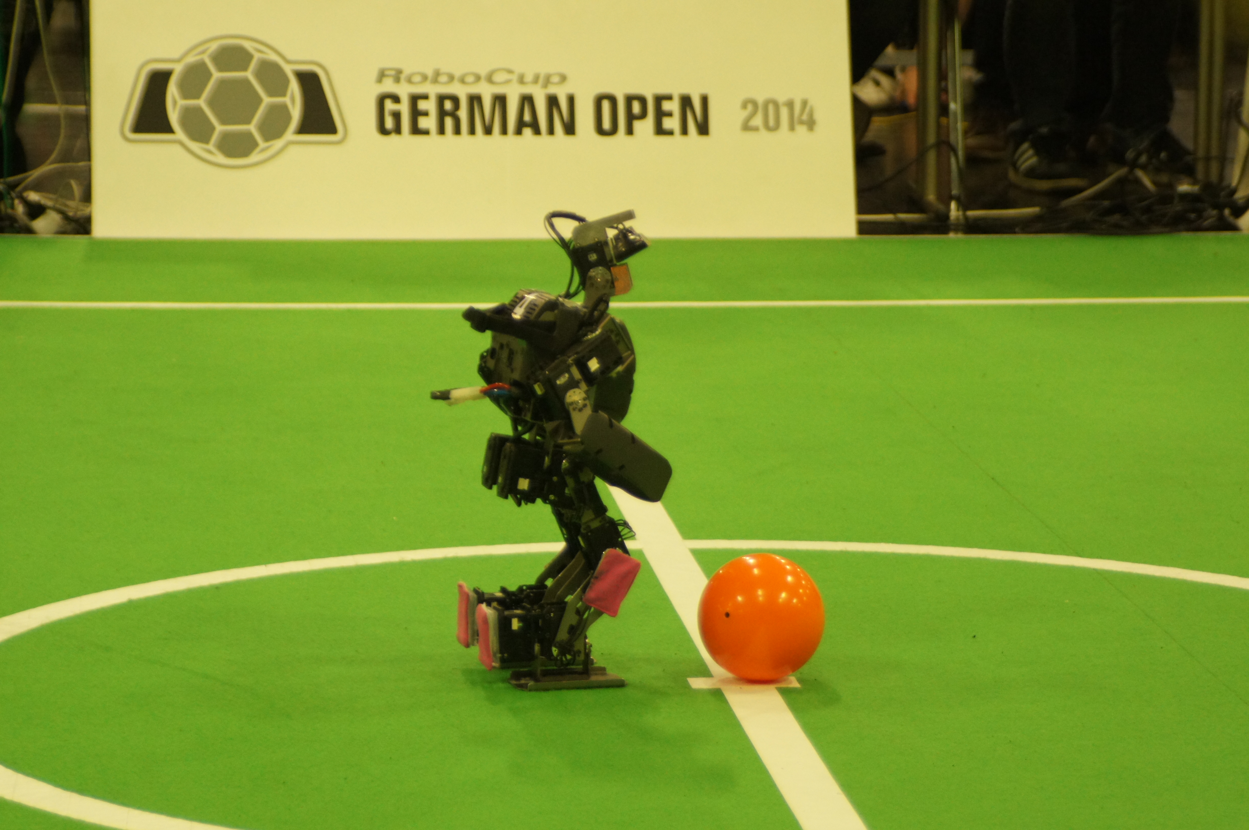 Damit werden wir im morgigen Spiel mit den Wolves leider nur um den 3ten Platz kämpfen können. Trotzdem sind wir mit dem Spiel sehr zufrieden. Sowohl wir, als auch die Bold Hearts haben große Fortschritte in der Bildverarbeitung, im Laufen und auch im Verhalten gezeigt und konnten dem Publikum ein spannendes Spiel bieten. Eine Niederlage für die Bold Hearts wäre mindestens genau so hart gewesen wie die unsere. Wir wünschen sowohl den Bold Hearts als auch den FUmanoids viel Erfolg für das morgige Finale und sind gespannt auf das Ergebnis. Dieses Spiel wird in unserem Livestream zu sehen sein.