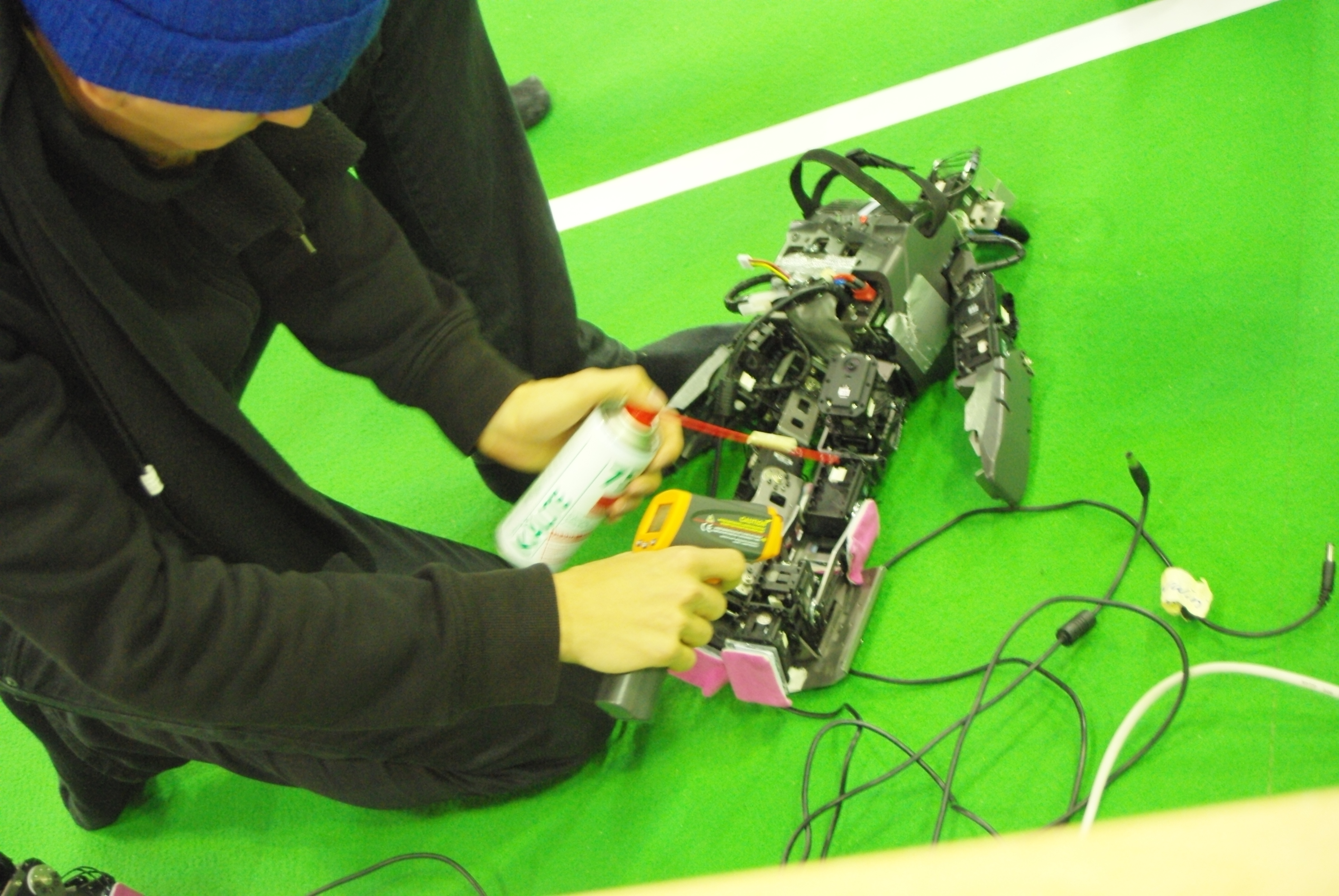 Bereits seit dem Ende der regulären Spielzeit befanden sich unsere Akkus im „Schnellademodus“, damit wir unseren Robotern genügend Energie für ein längeres Elfmeterschießen bereitstellen konnten. Das zahlte sich dann auch schnell aus.