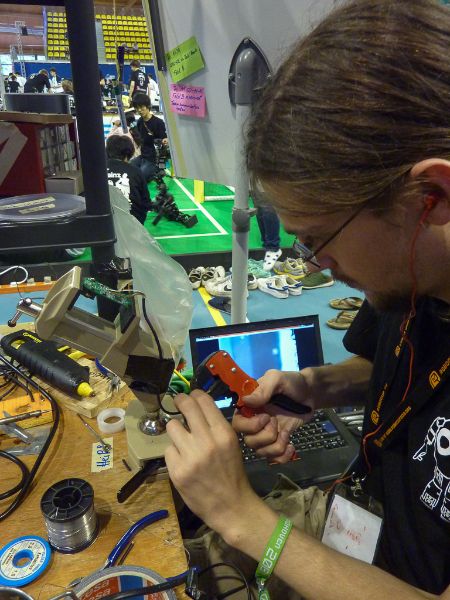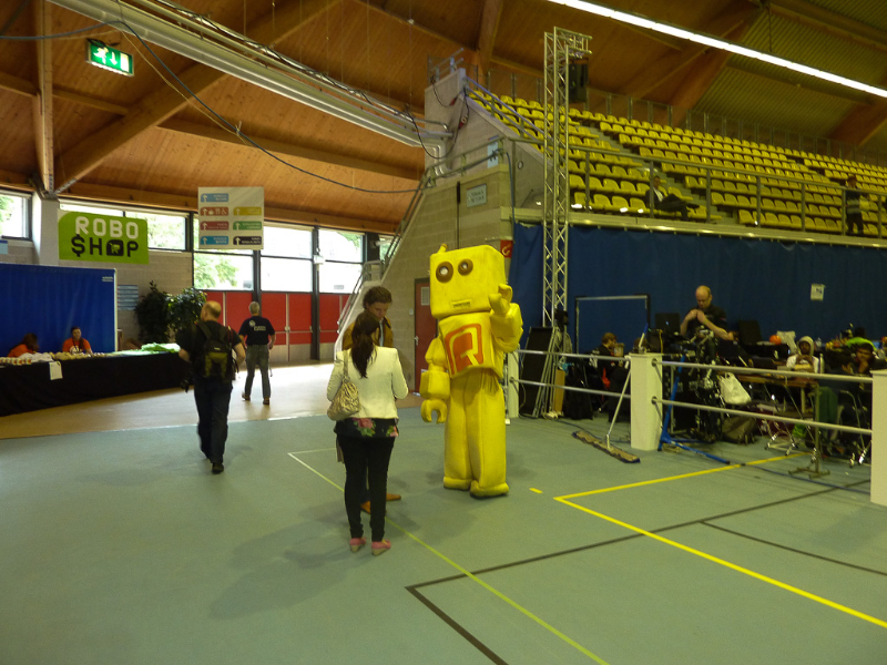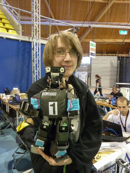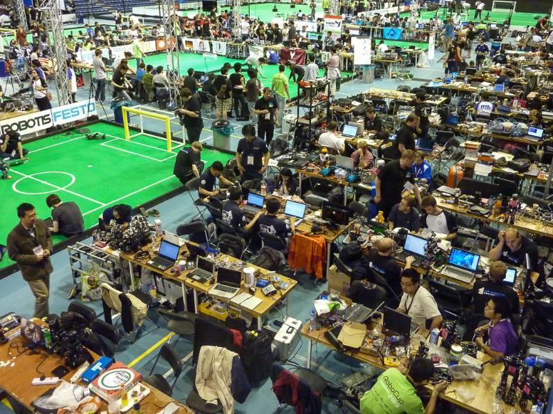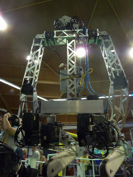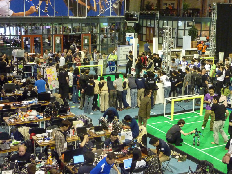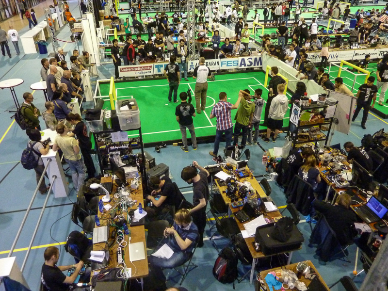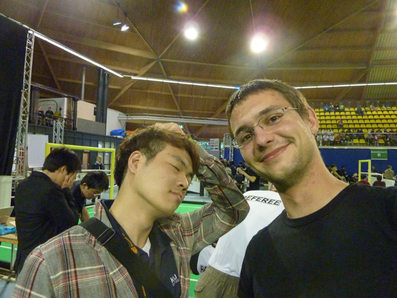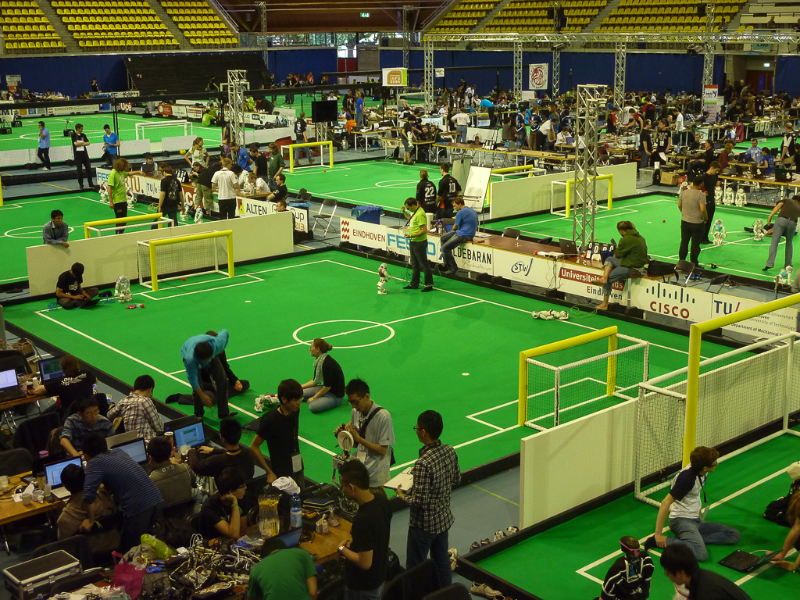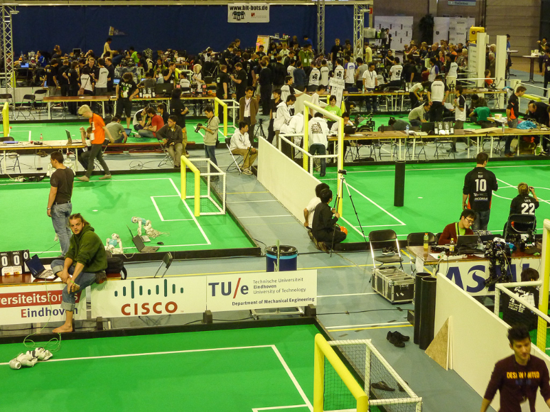 Von den Menschen auf dem Feld gelang niemandem eine nennenswerte Aktion, abgesehen von mehreren amüsanten Karambolagen und Pirouetten um die eigene Achse. Später wurde jedoch ein Roboter aus der Teen-Sized-League mit auf das Feld gelassen, der die menschlichen Spieler (im direkten Vergleich) dann auch prompt aus-dribbelte und ein Tor schoss.