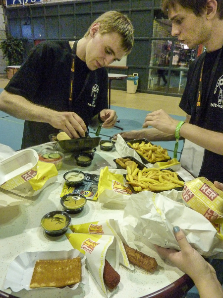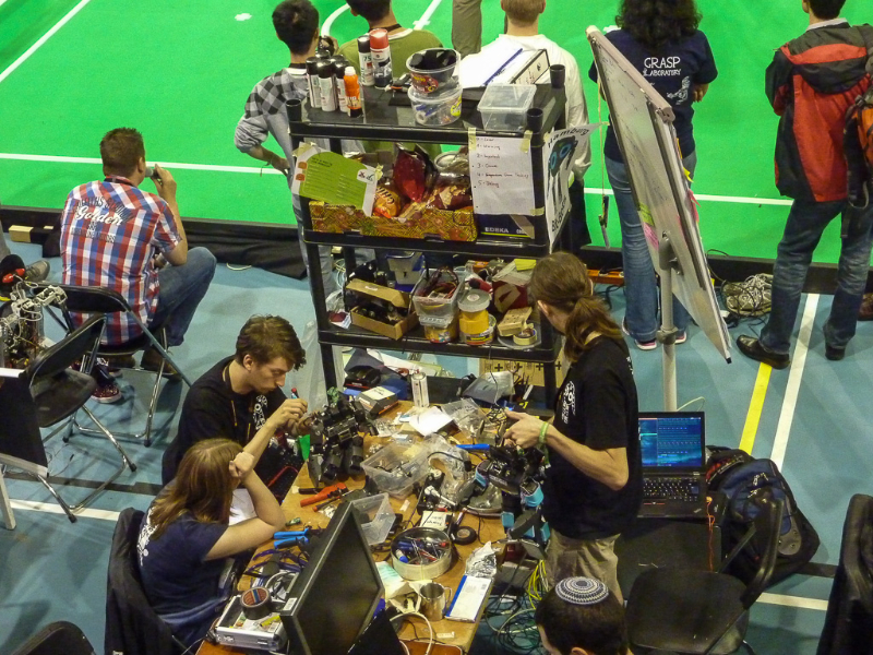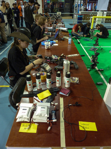 Insgesamt ein guter Tag. Unsere Hardware ist einsatzbereit, und unser erstes Vorrundenspiel haben wir gewonnen. Wir haben zwar keine weltbewegenden Änderungen auf unseren Robotern implementiert, dafür aber die Software auf einen stabilen Stand gebracht womit sich unsere Ausfälle in Grenzen halten. Wer sich unser Spiel angucken möchte findet in unserem Youtube-Chanel die Aufzeichnung unseres Live-Streams.