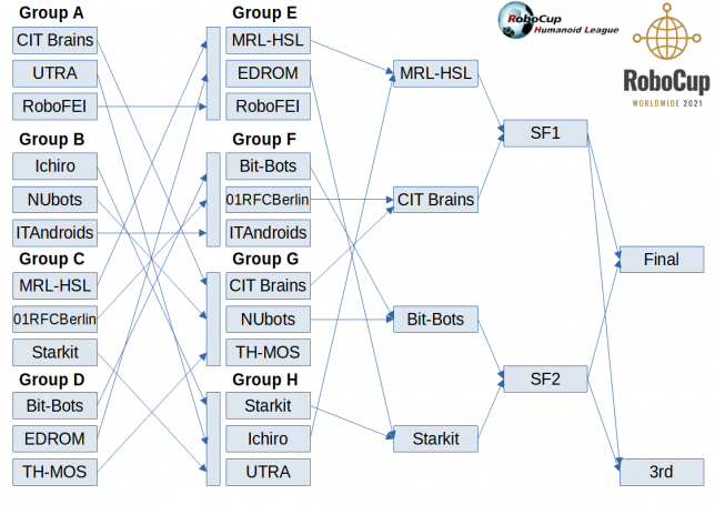 We are really proud of what our robots managed to achieve. We are also excited to get to play in the third place match tomorrow against the CIT-Brains. If you want to watch it, it will be streamed at 10 here: https://www.twitch.tv/robocuphumanoidfielda
