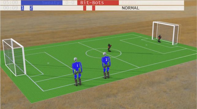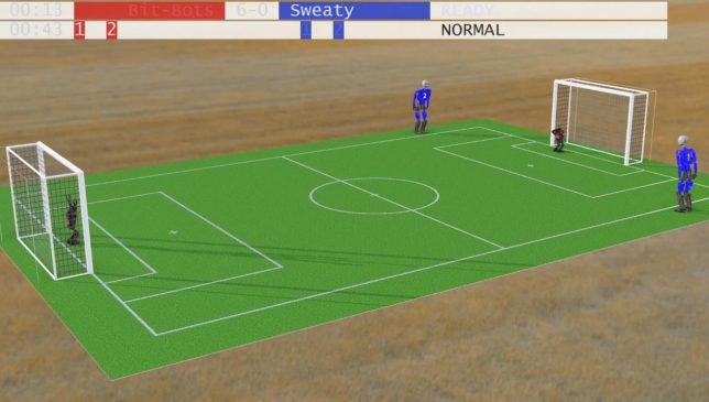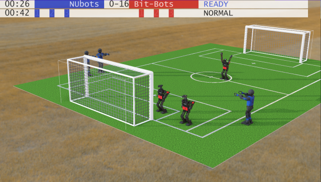 We hoped that one of the major advantages of the simulation would be, that we would not have to struggle with hardware issues. However, we managed to actually do have hardware issues… and of course they were in this important game! Our feet got stuck in each other and we didn’t manage to get them apart again. Luckily our robot was reset to outside of the field soon after and our hardware issues were solved again.