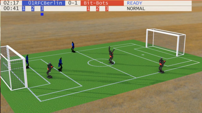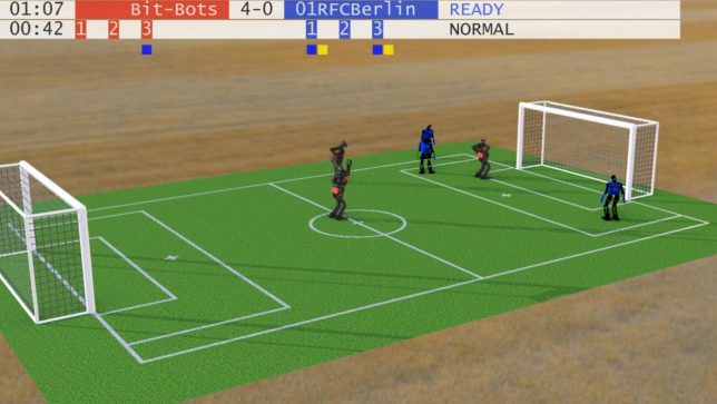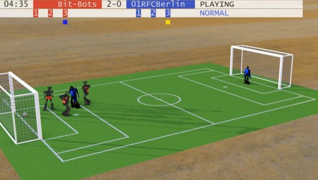 After the exciting game yesterday against the 01. RFC Berlin, we got to play in the quarter final. The drawing for us was to play against the Nubots. They had managed to score another goal in one of their group games, but we were reasonably confident that we could win the game. However, we were still anxious about having a breaking bug in our software that would prevent us from playing and winning against the Nubots.