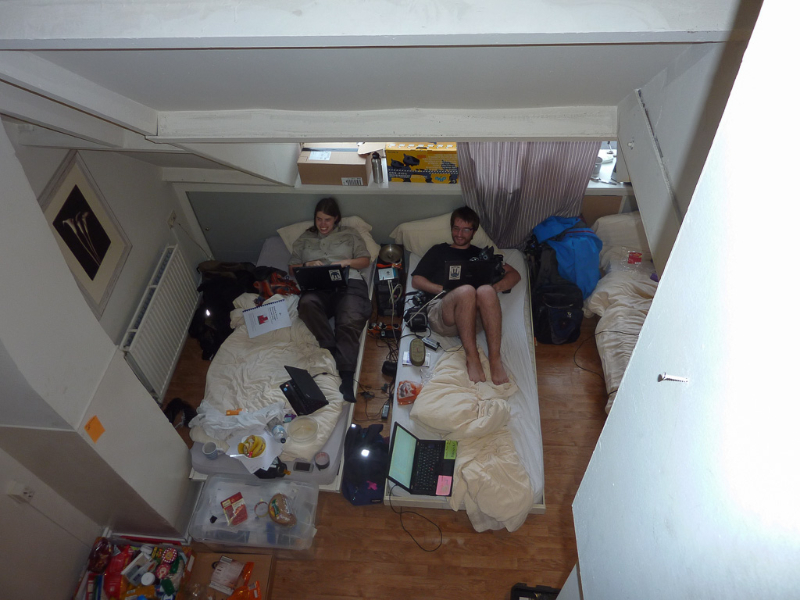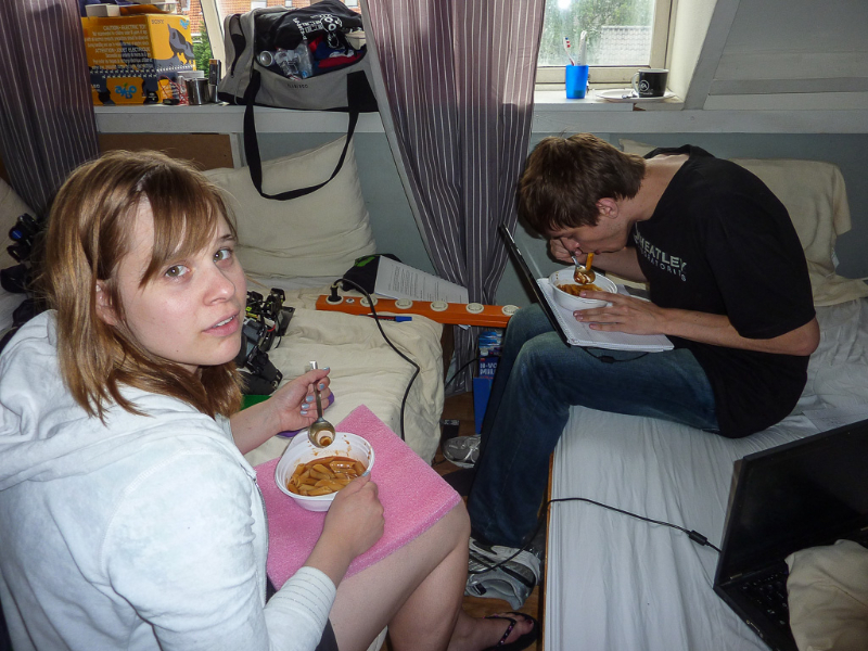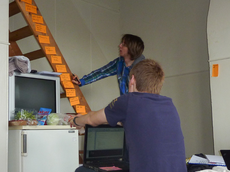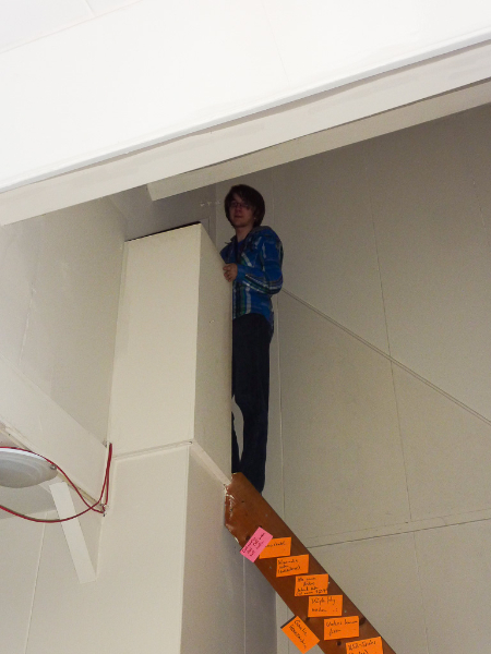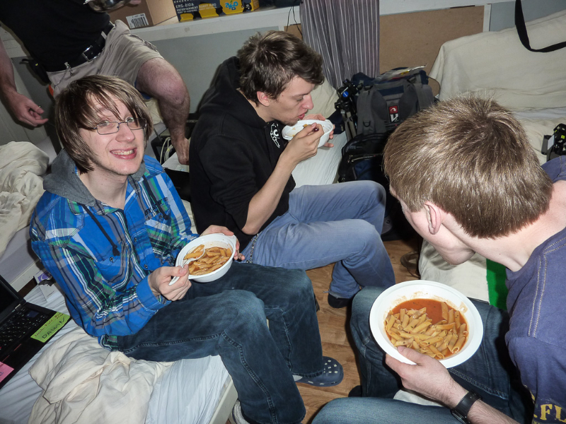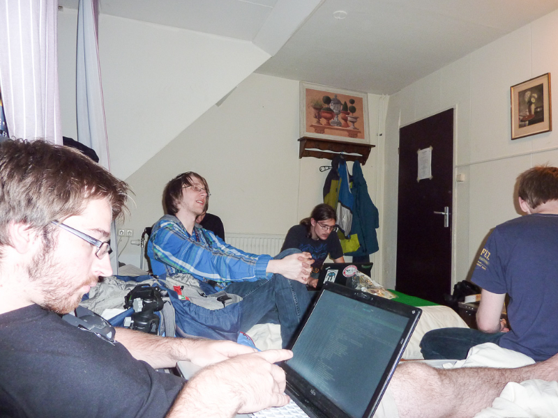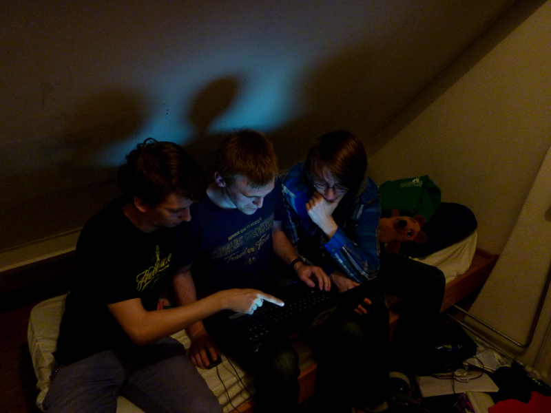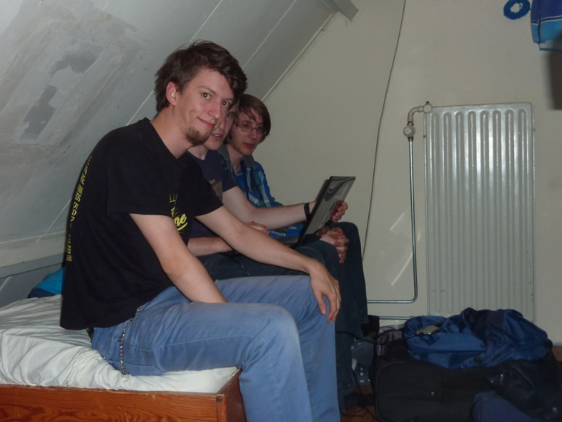 When the rest wanted to join them, they were stopped, because the hall had not been officially opened its doors and it was only Sheepys orange Bit-Bots shirt which let them pass unnoticed (the organizers shirts are of a quite similar colour).The team then regrouped outside the hall to wait and recognized some faces when the other teams arrived. Shortly after eight o’clock the teams were allowed to enter the hall, so we came in (again) and set our stuff up near one of the playing fields. Since then we are testing, installing the new heads and doing everything necessary to get ready.