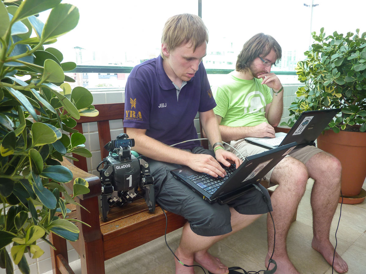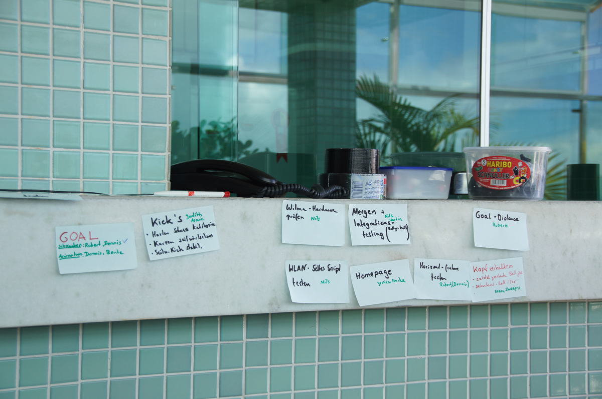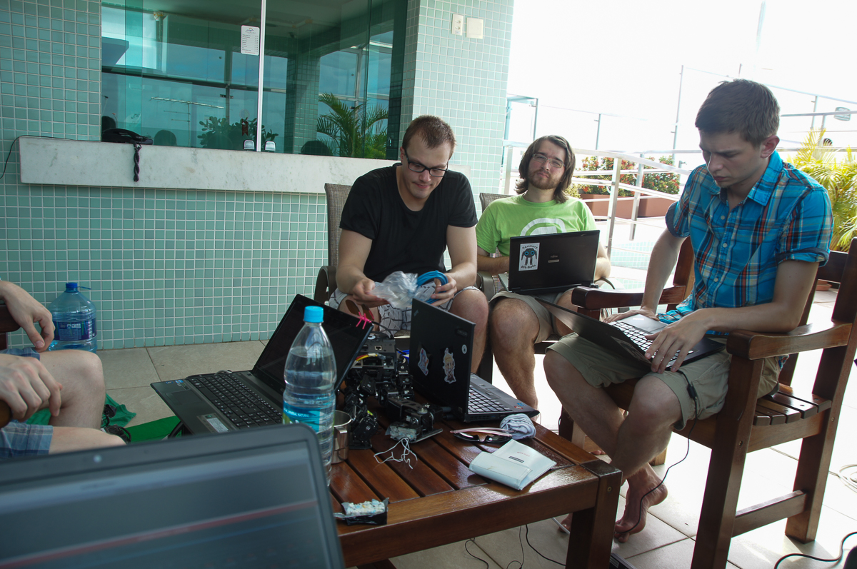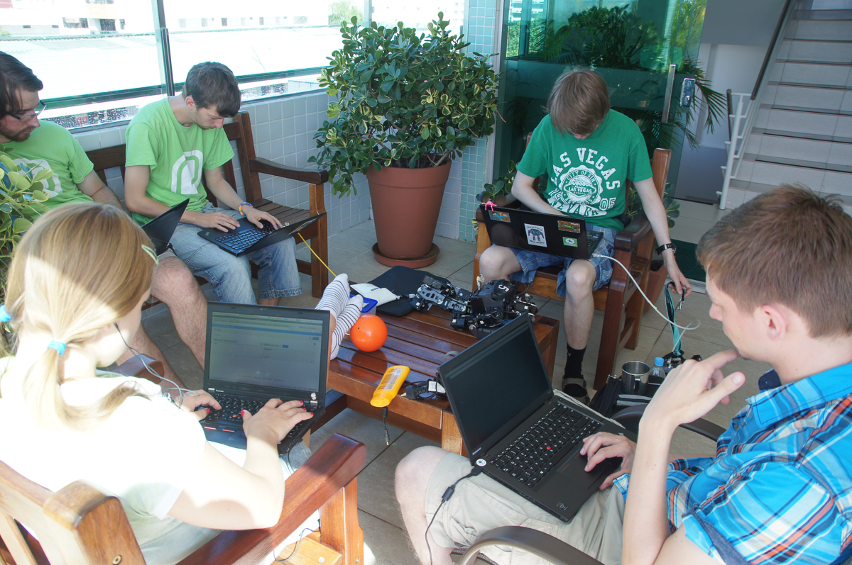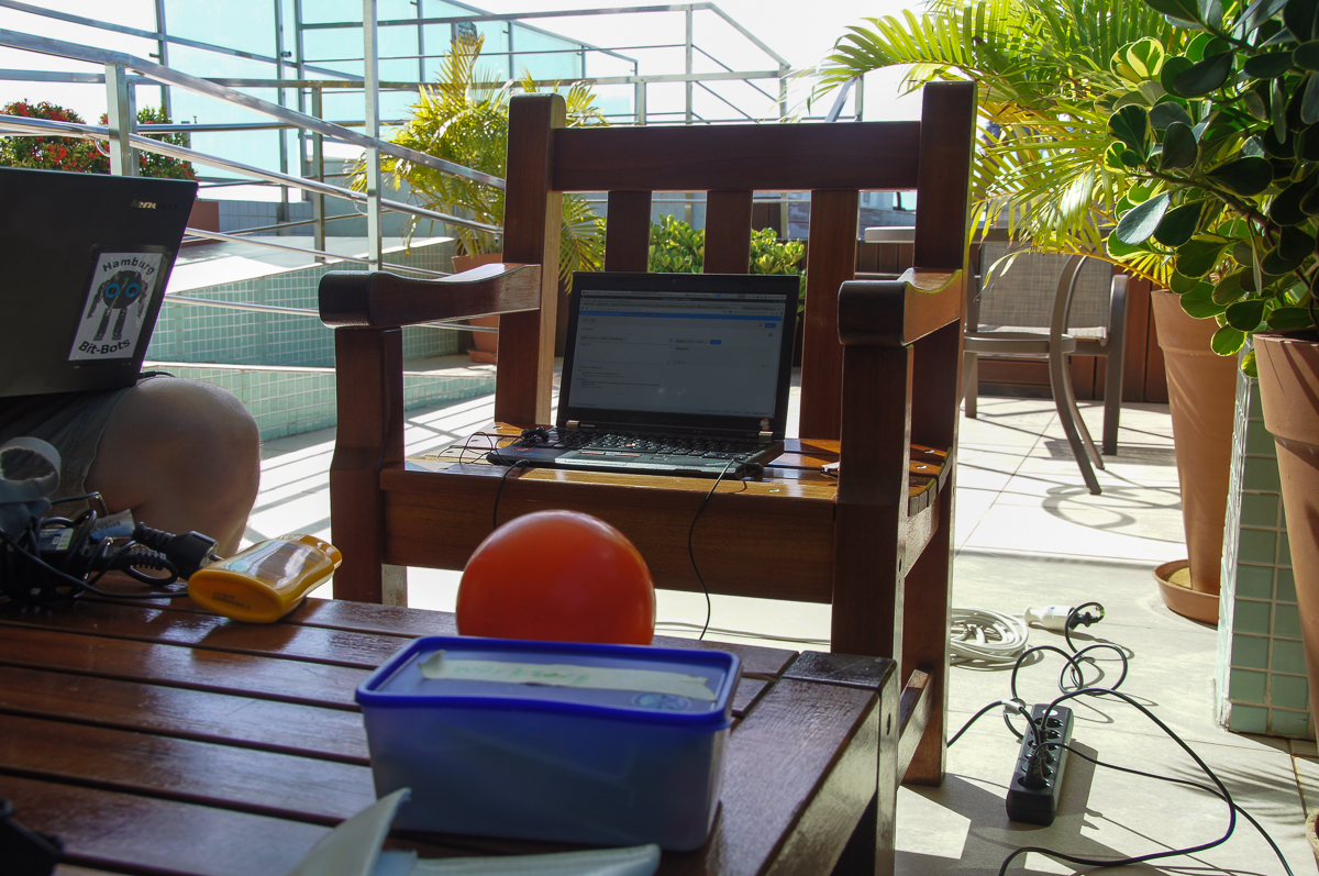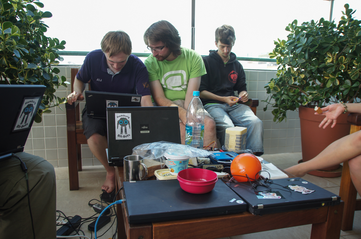 After a joint breakfast in our base camp this morning, we are now assembling our robots and are getting the software ready for the competition. The day after tomorrow we will then be able to set up in the competition hall for the first time.