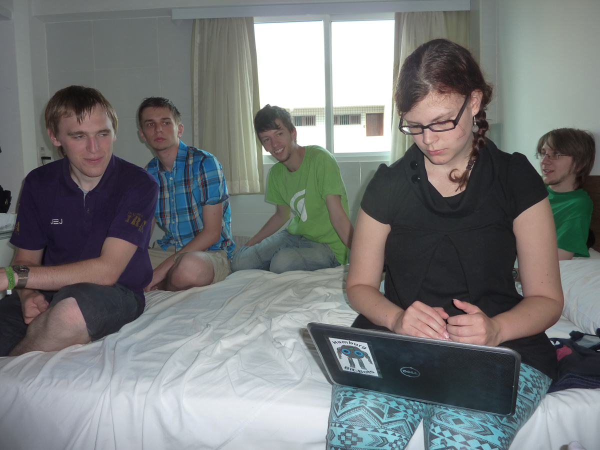 It’s still a quiet autumn in Sydney, but this will soon come to an end: It is RoboCup again and for the second time in the history of RoboCup it will take place in Australia. This time in the Sydney Convention and Exhibition Centre to be precise. Just about 10 minutes walking distance away we set up our base camp. But back to the beginning and the 34 respectively 40 hours of journey that stood between the departure in Hamburg and our arrival in Sydney. Due to organizational issues two team members, Jan and Finn, already left at 10 am on June 28th. The others’ (Florian, Jonas, Niklas, Timon, Jasper, Judith, Marc, Tanja and Sebastian) journey towards London began only at 16:45. After being reunited in Hong Kong the arrival in Sydney was scheduled for 06:45 AEST (Australian Eastern Standard Time). However, dense fog forced the plane to make a refueling stop in Brisbane before everyone could enter Australian ground at 11:05 AEST.